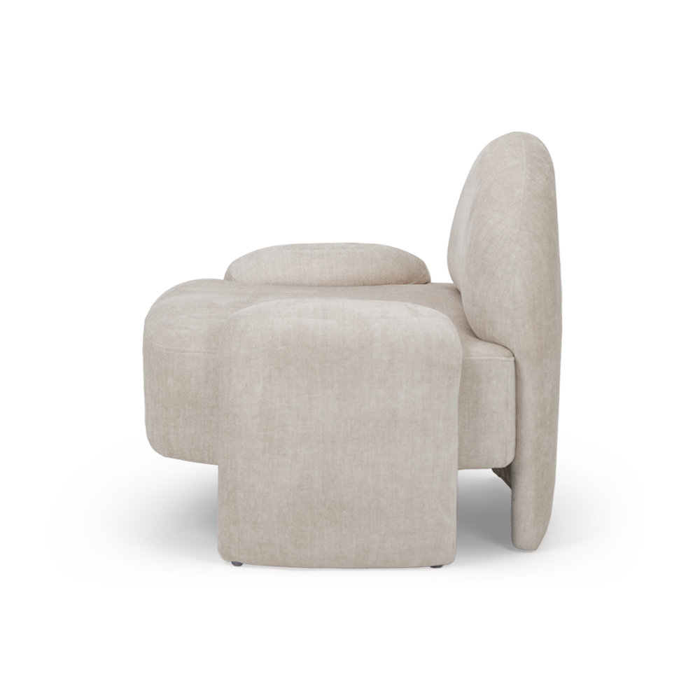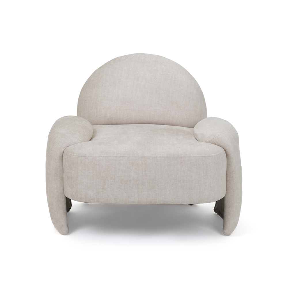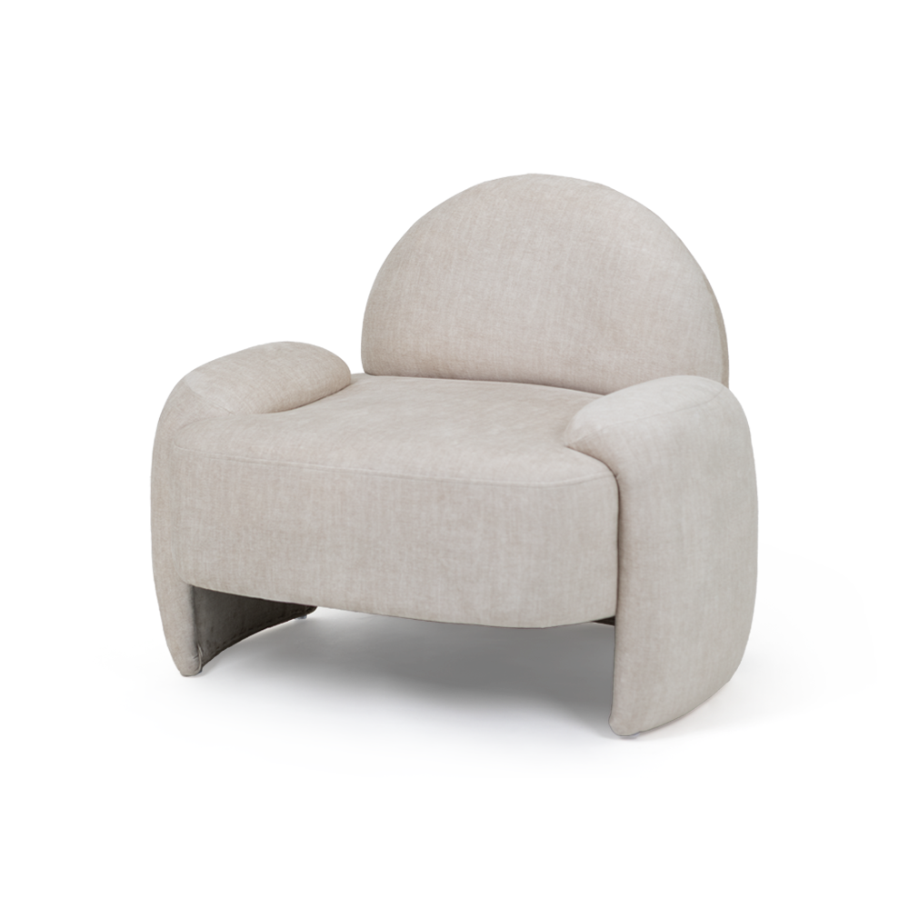 Cadeirão com estofo em tecido.